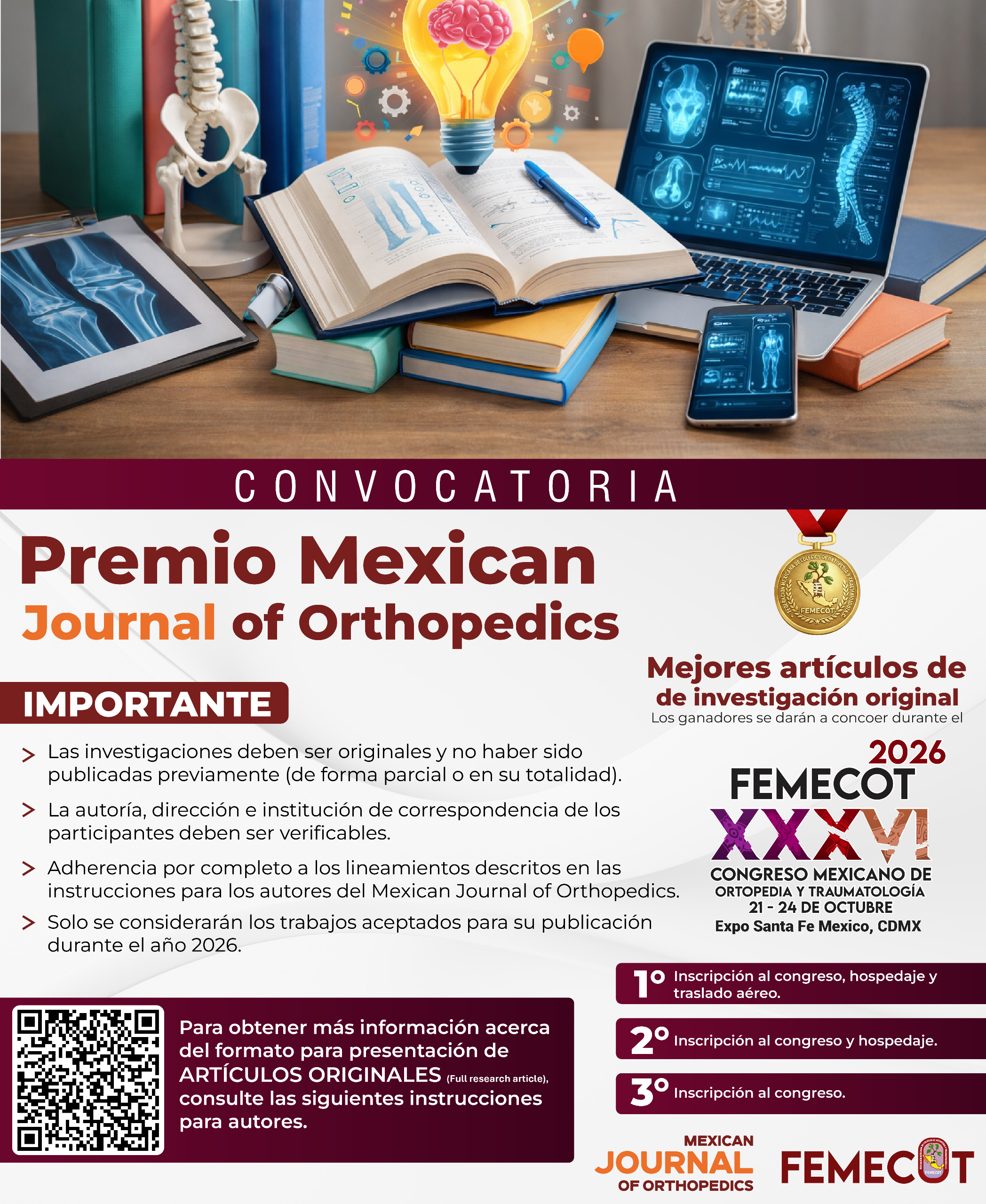 membresía de sus Asociaciones Federadas, así como a médicos ortopedistas de Colegios y Asociaciones afines, a la edición 2025 de nuestro Congreso Nacional, donde se ofrecerá la más alta calidad en educación médica e investigación científica, brindando al mismo tiempo un espacio de convivencia y la oportunidad de visitar una excepcional exposición comercial.